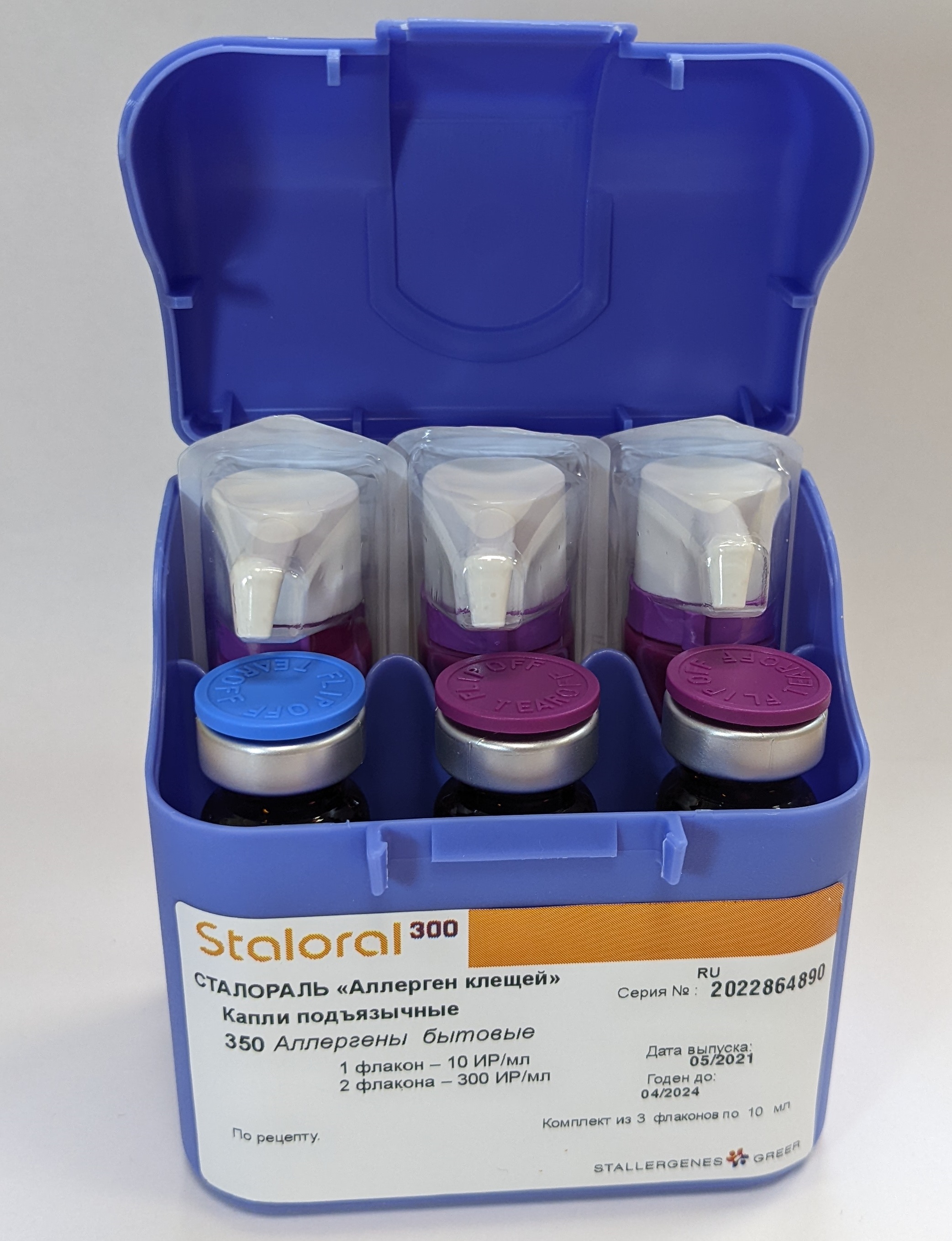 СТАЛОРАЛЬ «Аллерген клещей» – это препарат для аллерген-специфической иммунотерапии (АСИТ), применяемый для лечения аллергии на клещей домашней пыли. Он помогает уменьшить выраженность симптомов аллергического ринита и бронхиальной астмы, снижая чувствительность организма к аллергену.
